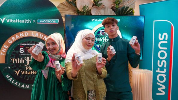 VitaHealth reaffirmed its leadership in Halal-certified health supplements with the launch of the “Pilih Halal, Pilih VitaHealth” campaign in collaboration with Watsons. Held at Dancing Fish, Bangsar Shopping Centre, the campaign was officially launched by Dr. KS Beh, Chief Executive Officer of VitaHealth (Malaysia & Singapore), together with Foo Hwei Jiek, Trading Director of Watsons Malaysia, and witnessed by Fahrin Ahmad, famous Malaysian television host and actor, and Islamic preacher Muallim Muda Shamsul Aiman.