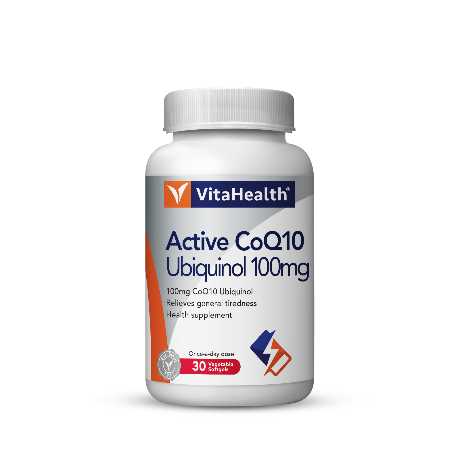 VitaHealth Active CoQ10 Ubiquinol 100mg contains ubiquinol coenzyme Q10 (CoQ10).