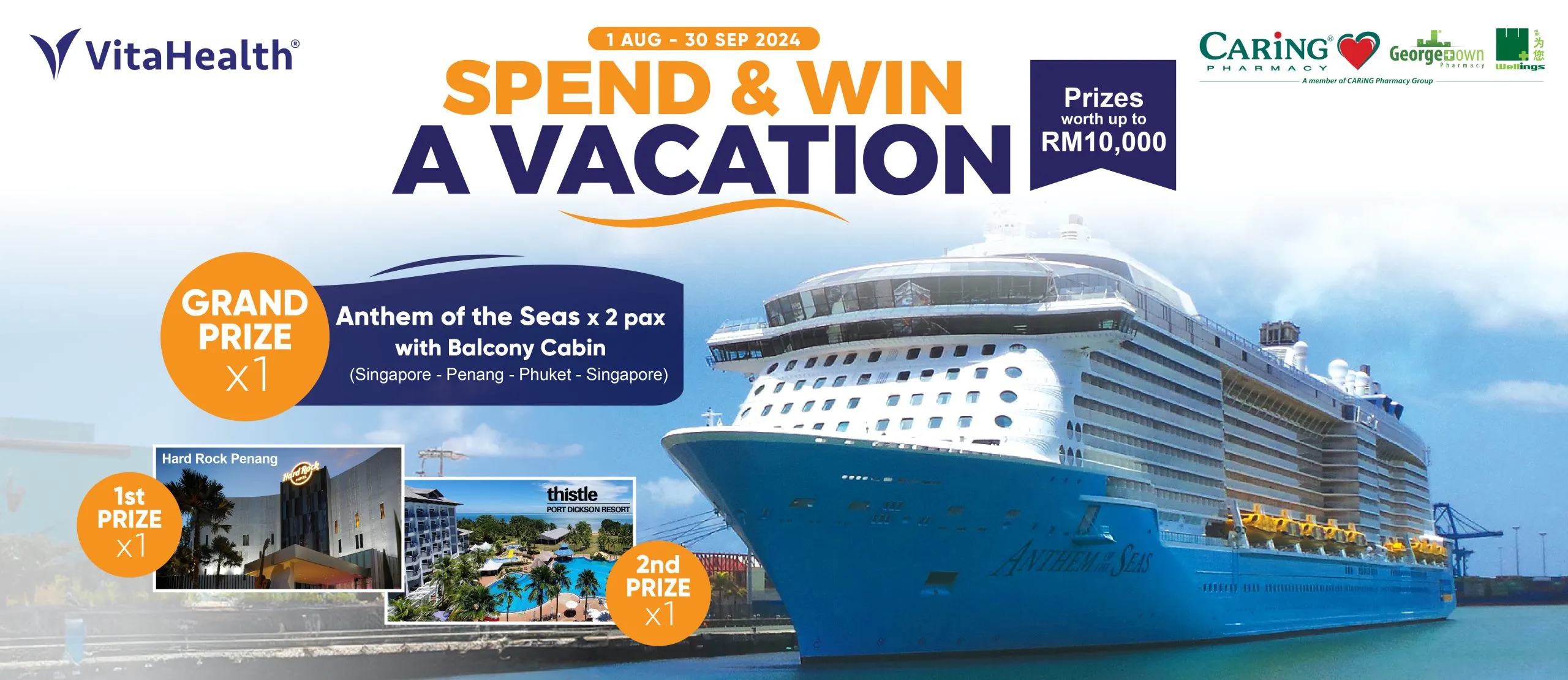1. Spend a minimum of RM138 on any VitaHealth products at CARiNG Pharmacy, Georgetown Pharmacy or Wellings Pharmacy within Contest period.